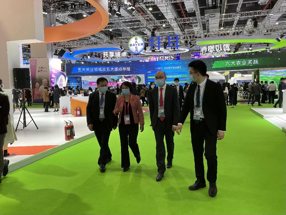 儀式結(jié)束后,嘉賓們參觀了連續(xù)第三年亮相進(jìn)博會的拜耳展臺。圍繞“共享健康、消除饑餓”的全新企業(yè)愿景,拜耳呈現(xiàn)覆蓋預(yù)防、診斷、緩解及治療于一體的醫(yī)療解決方案和創(chuàng)新、高效、環(huán)保的綜合農(nóng)業(yè)解決方案,亮點(diǎn)紛呈。