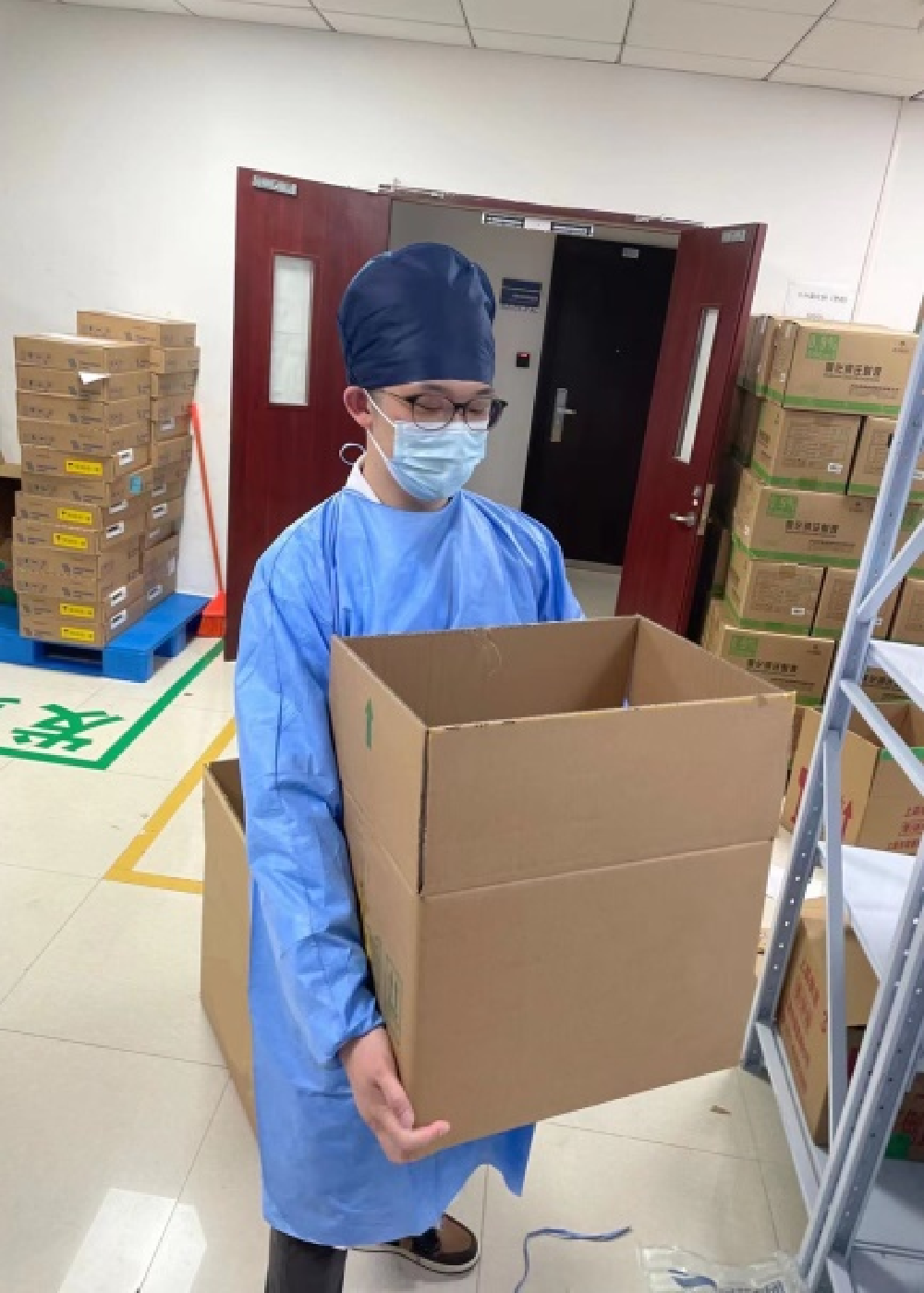 為強(qiáng)化疫情期間針對(duì)醫(yī)療機(jī)構(gòu)的各項(xiàng)醫(yī)療防護(hù)物資保供,在不占用醫(yī)護(hù)住宿條件的情況下,上藥醫(yī)療器械SPD運(yùn)營(yíng)總部堅(jiān)持部署最大限度的人數(shù)配置,保證各醫(yī)院的SPD服務(wù)正常運(yùn)行,80多名SPD員工奮戰(zhàn)在醫(yī)院一線,隨時(shí)響應(yīng)醫(yī)院的需求。SPD運(yùn)營(yíng)經(jīng)理顧寅韜所在的醫(yī)院共有4人,團(tuán)隊(duì)每次搬運(yùn)物資時(shí),都要經(jīng)過(guò)從地下車(chē)庫(kù)到地面的一條長(zhǎng)長(zhǎng)的傾斜坡道。一個(gè)多月的來(lái)回搬運(yùn),幾乎磨平了員工的舊鞋。四月,嘉定某醫(yī)院即將轉(zhuǎn)型為新冠肺炎定點(diǎn)治療醫(yī)院,現(xiàn)場(chǎng)SPD人員告急,只剩下了1位員工,但病患的救治一刻也不能耽擱!剛結(jié)束金山公衛(wèi)支援任務(wù)的李猛迅速報(bào)名了支援工作。他也基于醫(yī)院的實(shí)際情況,分享了援助公衛(wèi)中心時(shí)學(xué)習(xí)的院感經(jīng)驗(yàn),向醫(yī)院提出了多項(xiàng)合理化建議,得到了院方的好評(píng)。