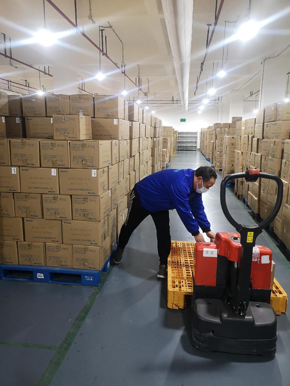 上藥康德樂各個庫區(qū)嚴格執(zhí)行現(xiàn)場帶班制度,細分責任區(qū),加強安全教育和防護措施,對庫區(qū)實行網(wǎng)格化、區(qū)域化管理。自3月28日閉環(huán)管理以來,上藥康德樂浦東外高橋庫區(qū)、浦西九亭和天馬庫區(qū)累計277名員工駐扎倉庫閉環(huán)運營,全體員工斗志昂揚,全力以赴與時間賽跑,每天加班至深夜。從3月15日至4月9日,上藥康德樂累計進貨數(shù)達27萬余箱,出貨數(shù)達22萬余箱,為廣大患者急需的醫(yī)療物品提供了穩(wěn)定供應(yīng)和物流保障。