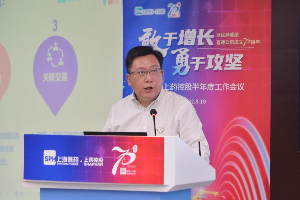 上藥控股戰(zhàn)略創(chuàng)新部總經(jīng)理黃文爭作《上半年度重點工作進(jìn)展》報告。