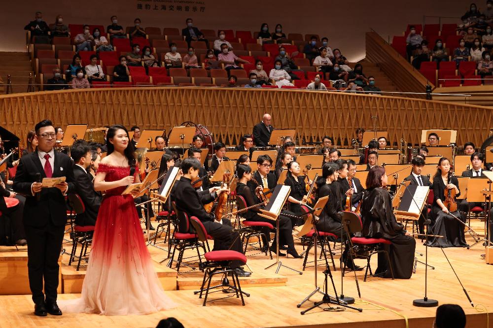 伴隨上海交響樂團(tuán)的精彩演出,上藥控股七十載的發(fā)展歲月如同一幅氣勢如虹的畫卷,被娓娓道來。演出中,管弦樂隊與笙、琵琶、二胡、鋼琴、竹笛等多件獨奏樂器相繼展開“對話”,中西合璧的國樂之聲交融結(jié)合,加之民族女高音的“點睛”,碰撞出奇妙的感官體驗,引領(lǐng)全場觀眾看到、聽到、領(lǐng)略到了文化與歷史的不朽魅力,演出結(jié)束時掌聲久久未能平息。